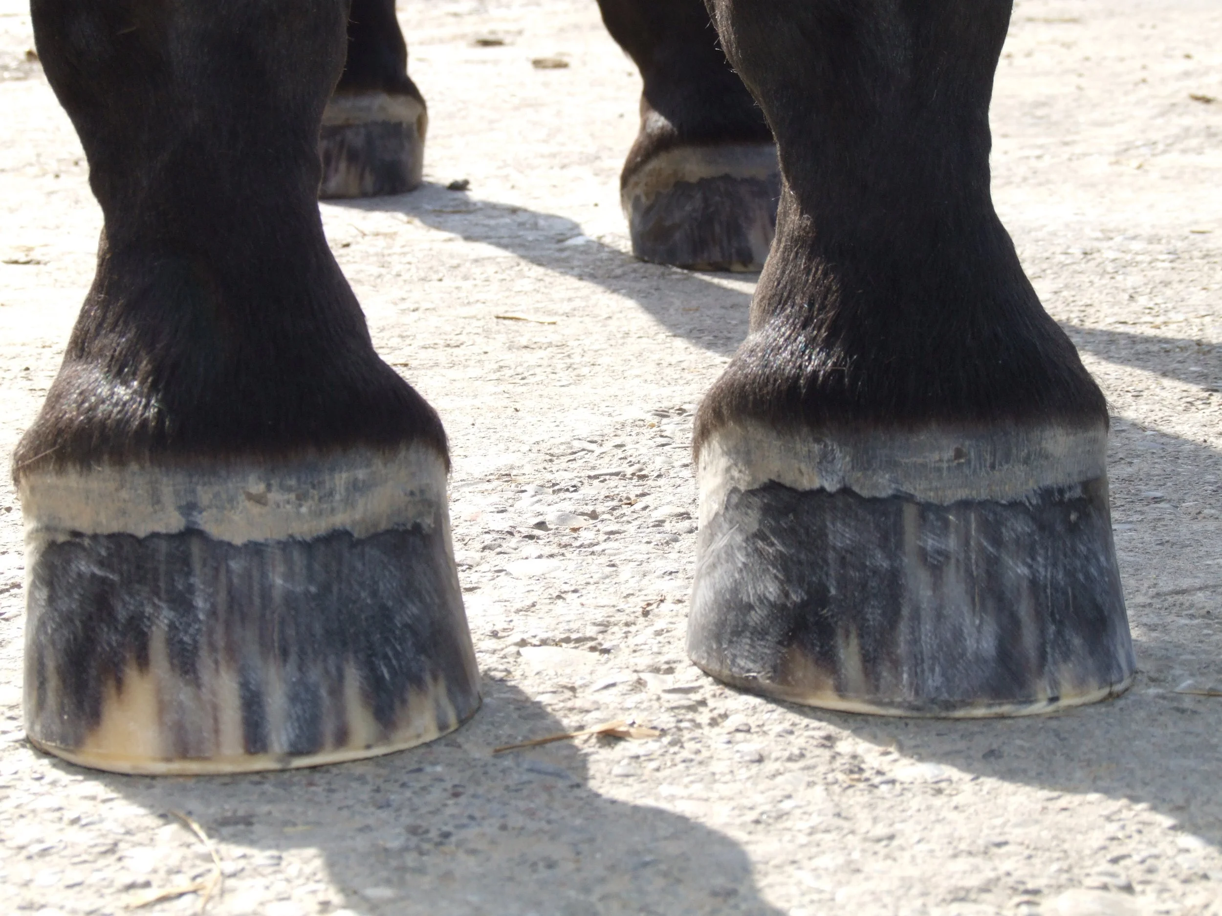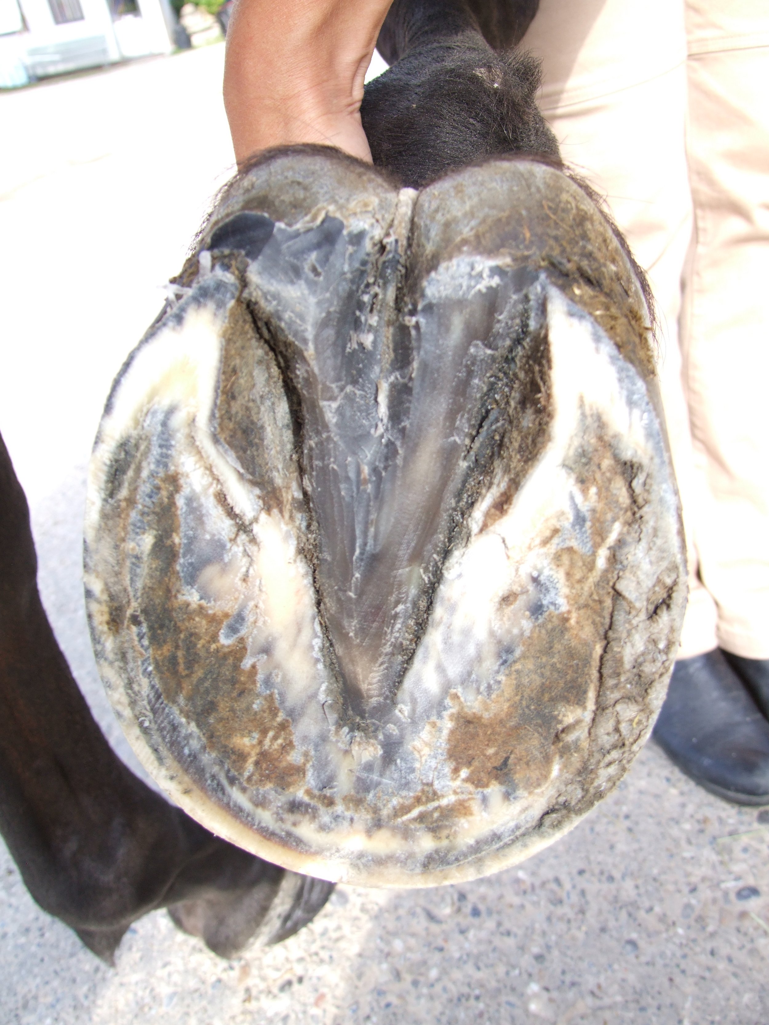 Die weisse Linie ist nicht mehr so breit, wie zu Beginn. Der Strahl ist kräftig und trägt mit und die Trachten weisen eine gesunde, normale Länge auf. Kurz und gut, Pablo läuft problemlos barfuss und hatte nur noch einmal einen Reheschub und zwar nur, weil eine plötzliche Futterumstellung stattfand.